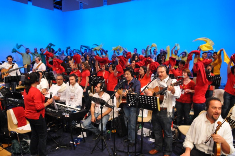 Tutti insieme per dire e cantare, uniti alle migliaia di fedeli